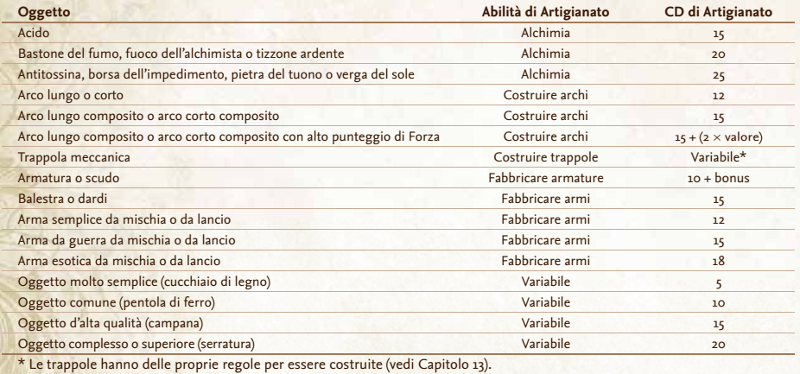 Gli oggetti particolarmente rari o esotici potrebbero aumentare la CD della prova di 5 o più.