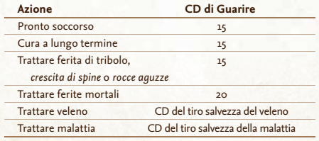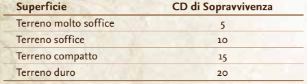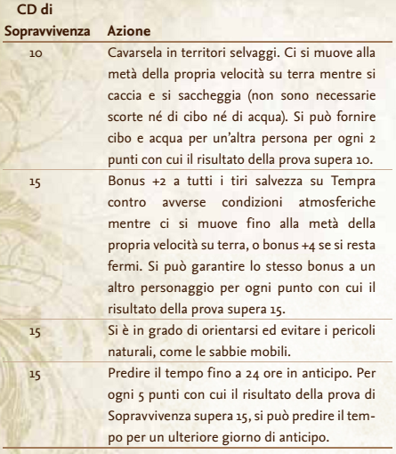Si può proteggere e nutrire se stessi e altre persone all’interno di territori selvaggi. La tabella seguente fornisce la CD per varie imprese che richiedono l’uso dell’abilità Sopravvivenza: