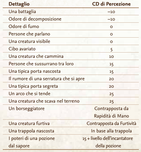 Se non si è addestrati in questa abilità si possono effettuare prove per trovare le tracce, ma soltanto se la CD 10 o meno. In alternativa, si può utilizzare l’abilità Percezione per trovare un’impronta o una traccia del passaggio di una creatura usando le stesse CD, ma non si può comunque utilizzare Percezione per seguire le tracce, persino se qualcun altro le ha già individuate.