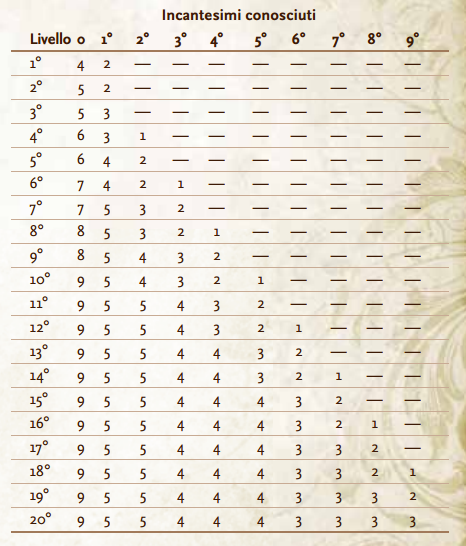 | Druido: | Un adoratore della natura e della magia primordiale, capace di assumere forme diverse. |