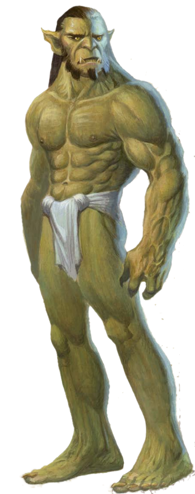 Alti da 1,8m a 2,1m, con fisico potente e pelle verdastra o grigia, i loro canini crescono spesso piuttosto lunghi fino a sporgere dalle loro bocche e queste “zanne”, unite con una fronte ampia e le orecchie un po’ a punta, danno loro quell’aspetto notoriamente “bestiale”.